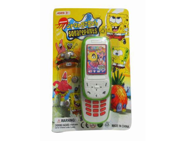 海绵宝宝卡通手机3色带3粒电池,灯光,音乐 |