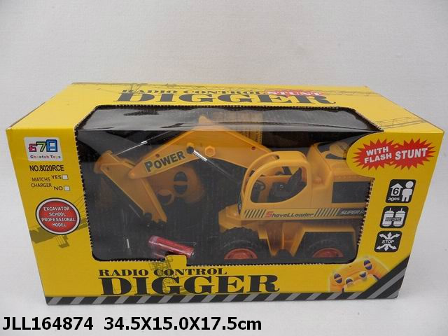遥控特技工程车(挖掘机、5通带7彩灯、带4节可充电电池2节非充电电池和充电器) |