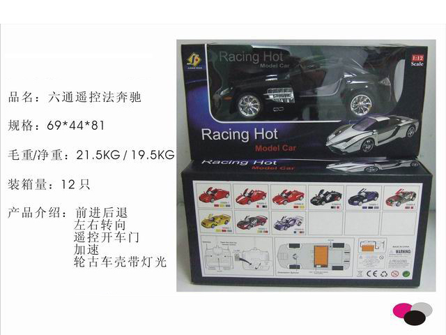 六通遥控法拉利(带前后+轮古灯光、加速、开车门)红、黑 |