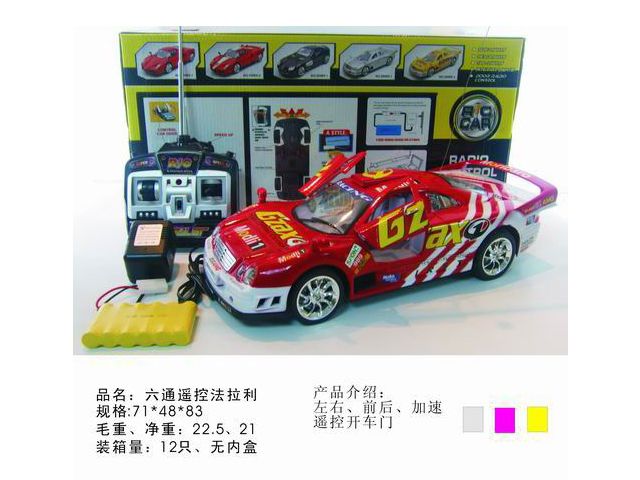 六通遥控法拉利(带前后+轮古灯光、加速、开车门)红、黄、银 |