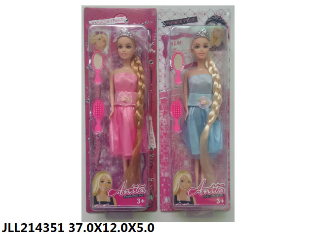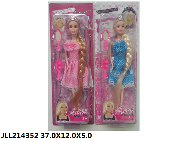 11.5寸实身活手长发辫子芭比公主+梳镜 |